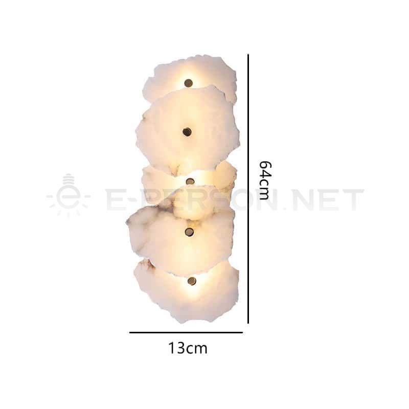 This artistic wall lamp is crafted from multiple irregular pieces of natural alabaster, combined with a durable metal frame. The layered stone panels create a sculptural design that resembles glowing clouds, diffusing soft and warm light through their unique textures. Perfect for villas, living rooms, hotel lobbies, or art spaces, this wall sconce is not only a functional lighting fixture but also a decorative statement piece. With its natural materials and artistic form, it is ideal for luxury residential and commercial interiors.