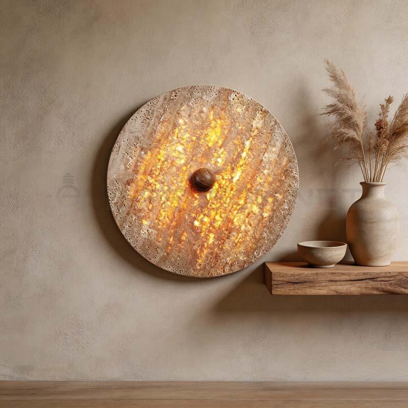 Luxury Travertine Wall Light Round Stone Decorative Wall Lamp Warm LED Interior Lighting
