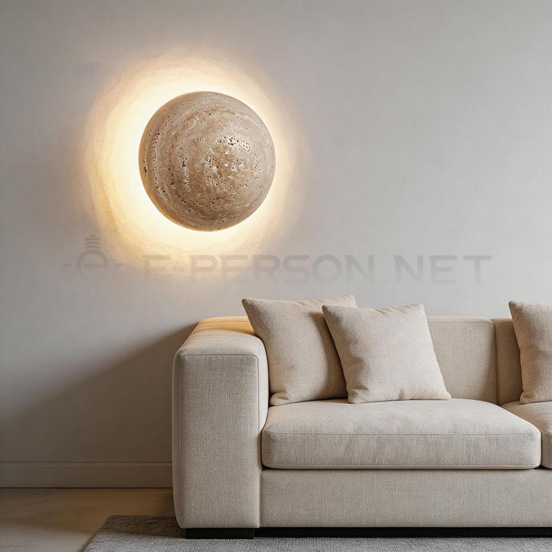 Luxury Round Travertine Wall Light Natural Stone Decorative LED Wall Lamp