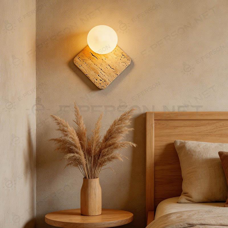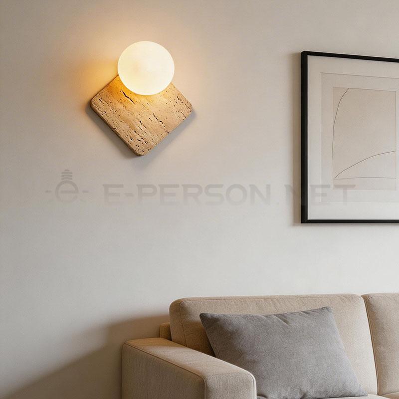 This decorative wall lamp combines a textured natural stone base with a smooth glass globe diffuser. The contrast between raw stone texture and soft spherical light creates a modern artistic statement. Perfect for living rooms, bedrooms, boutique hotels and designer interiors, it provides warm ambient illumination while serving as a sculptural wall accent.