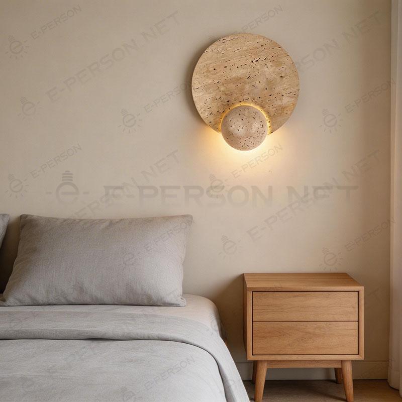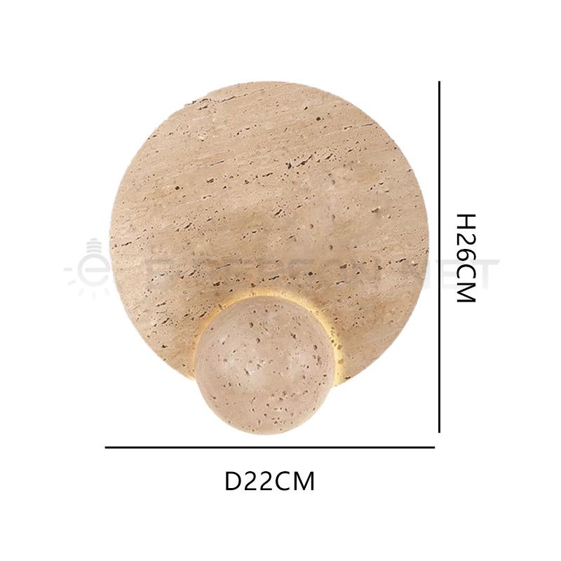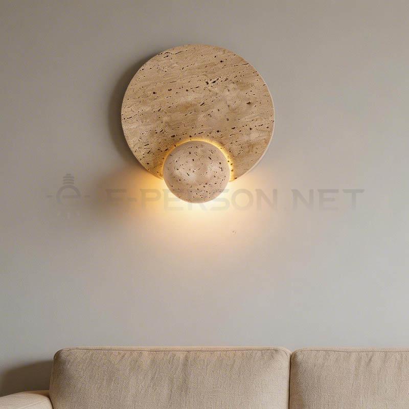 Modern Travertine Wall Lamp Round Stone Decorative Indoor Wall Light