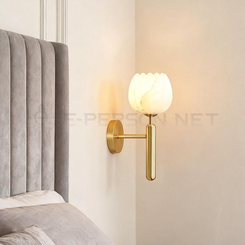Modern Alabaster Flower Wall Lamp Brass Wall Sconce Luxury Decorative Wall Light for Bedroom Living Room