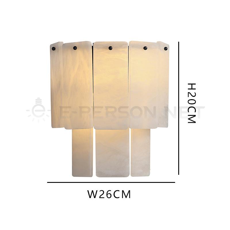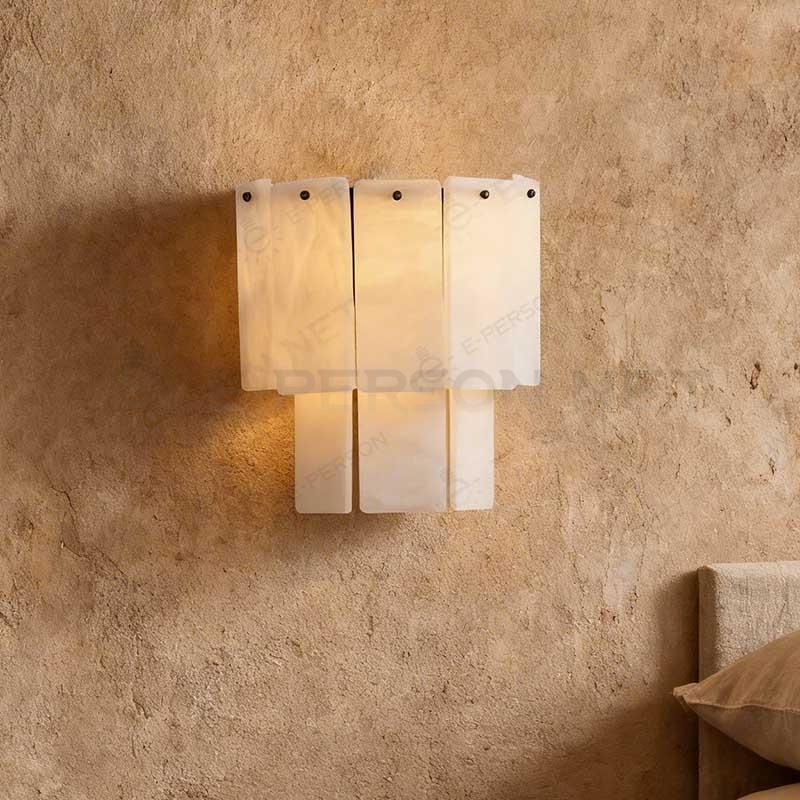 Crafted from natural alabaster panels, this wall lamp showcases the beauty of organic stone texture combined with modern design aesthetics. The vertically arranged stone plates allow light to pass gently through the translucent material, creating a soft and warm illumination effect.