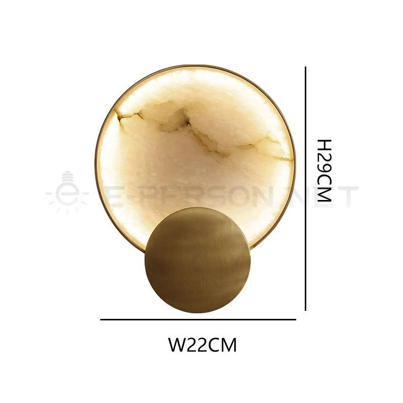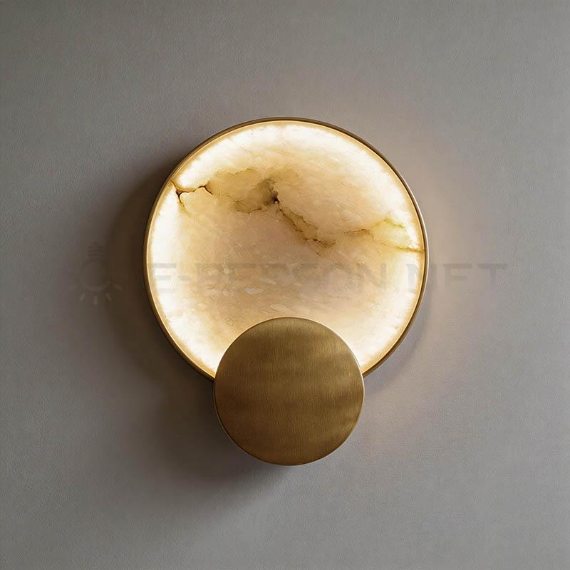 This round layered wall lamp combines alabaster-style diffusion with a brass accent disc. The halo-style illumination enhances wall texture while maintaining a clean, minimalist presence.
