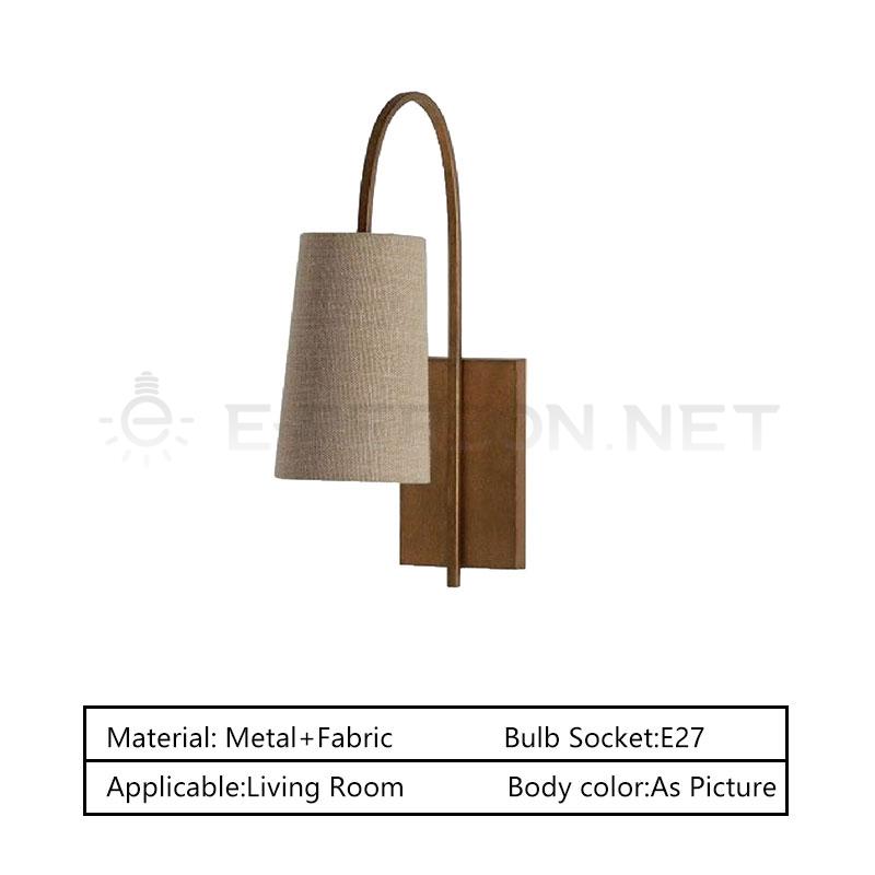This wall lamp features a graceful curved wooden arm combined with a natural fabric lampshade, creating a warm and organic aesthetic. The smooth arc design adds visual softness while enhancing the decorative appeal.