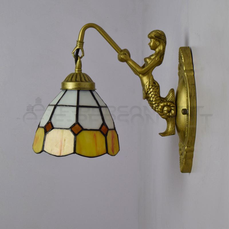Vintage Iron Stained Glass Mermaid Lamp Led Sconce Bracket Indoor Lights Bathroom Art Design