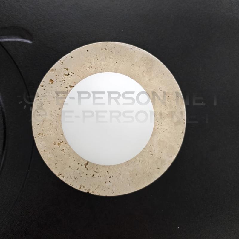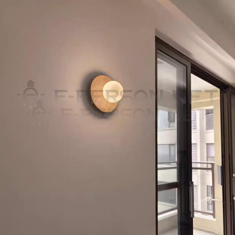 This Wabi-Sabi style round wall sconce blends natural materials with minimalism to create an understated statement piece. The clean circular stone-textured backplate paired with a frosted globe offers a warm, cozy glow — perfect for a bedroom, hallway, or modern natural-themed interior.