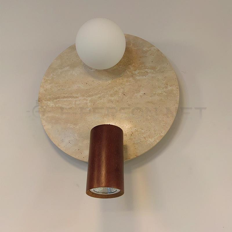 Wabi-Sabi Dual Light Wall Sconce | E14 Globe + Adjustable Spot Wall Lamp | Stone Texture Backplate with Wooden Accent