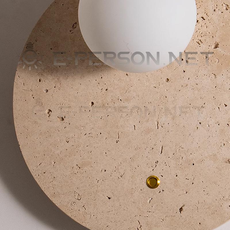 Wabi-Sabi Wall Lamp with Brass Button Switch | E14 Round Stone Texture Sconce | Minimalist Bedside Light Fixture