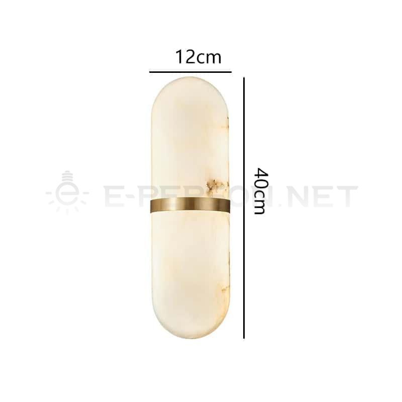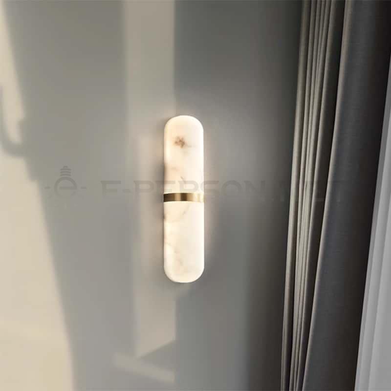 This modern wall lamp combines durable metal with a natural alabaster (cloud stone) shade, designed in a sleek capsule shape. The golden metal band enhances the structure while the alabaster diffuses light softly, creating a warm and elegant ambiance. Perfect for bedrooms, living rooms, hallways, or upscale hotels, this wall sconce serves as both decorative art and functional lighting. With high-quality materials and a timeless design, it elevates any interior with sophistication and style.