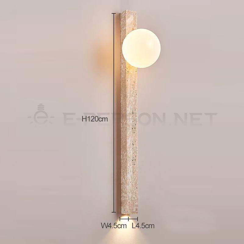 Minimalist Tall Column Wall Lamp | Wabi-Sabi E14 Globe Light with Stone Texture | Single-Light Vertical Decorative Sconce