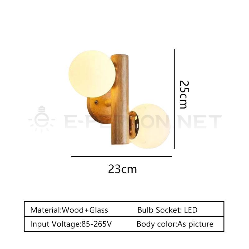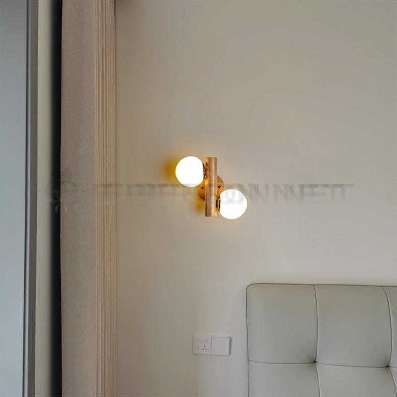 This Nordic solid wood wall lamp features a refined vertical wooden structure combined with two opal glass globe shades, creating a balanced and sculptural lighting design.The dual light sources emit soft, even illumination from both sides, enhancing the ambient atmosphere while adding strong decorative appeal.
