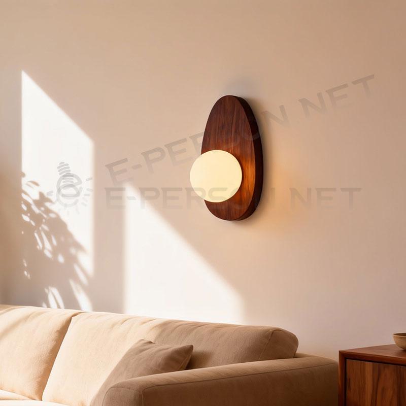 This Nordic wooden wall lamp features a clean oval solid wood backplate paired with a soft opal glass globe, delivering warm and comfortable ambient lighting.The flush mount design allows concealed wiring installation, creating a neat and minimalist wall appearance ideal for modern interiors.