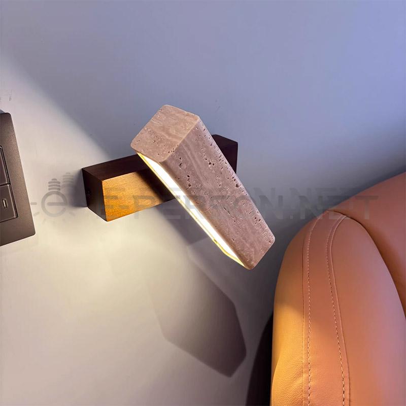 Travertine Wall Sconce Wabi-Sabi LED Light with Wooden Base