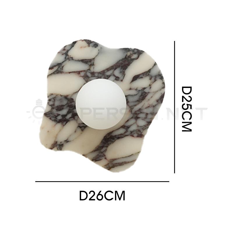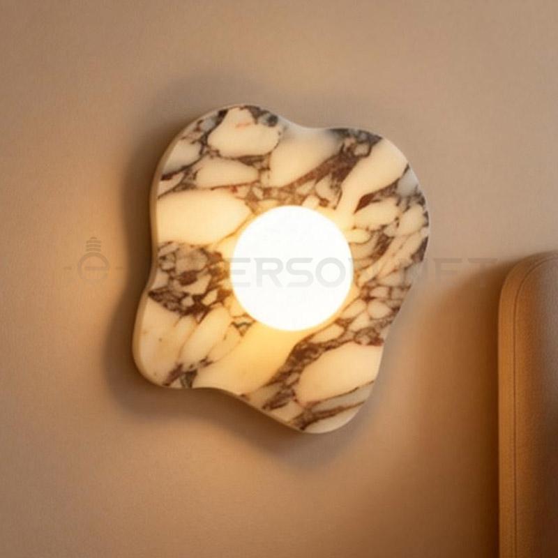 This marble wall lamp features a stunning contrast of Marble stone paired with a glowing glass sphere, creating a bold and artistic lighting statement. Crafted from natural marble, each piece showcases unique textures and patterns. The soft LED light diffuses evenly through the frosted glass, adding a warm and elegant touch to any space. Ideal for bedrooms, hallways, living rooms, hotels, or art-inspired interiors, this design blends geometry, luxury, and modern craftsmanship in one timeless piece.