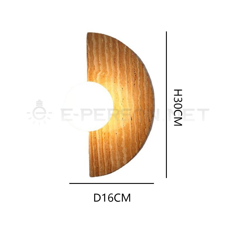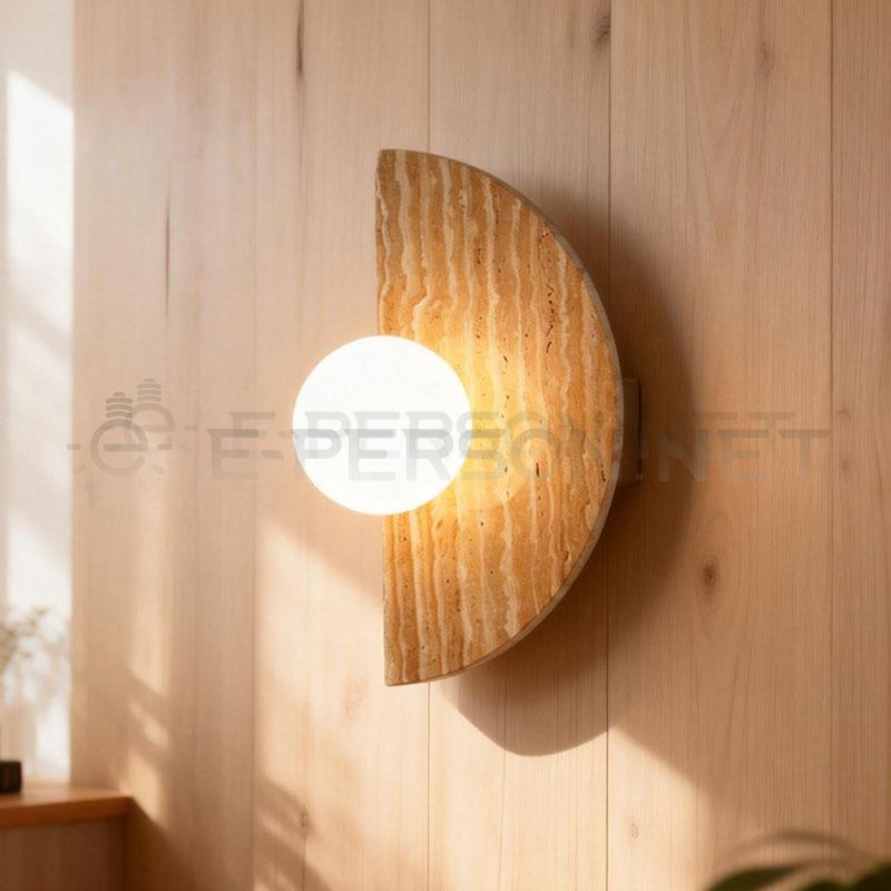 This decorative wall light features a half-round natural travertine stone plate paired with a glass globe shade, creating a soft and warm lighting atmosphere.The stone texture adds visual interest and a natural material feel, while the glass shade gently diffuses the light for comfortable ambient illumination.