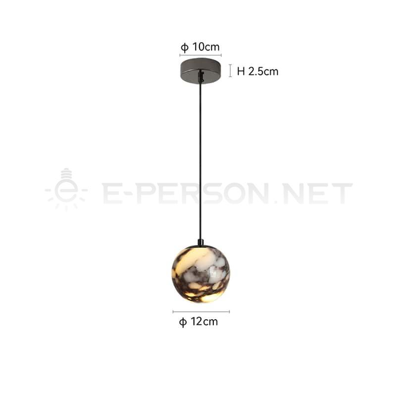 This elegant marble ball pendant light features a natural marble globe with an adjustable hanging cord and a sleek metal ceiling plate. The warm LED light gently passes through the translucent stone, revealing its natural veins and creating a sophisticated, cozy atmosphere. it’s ideal for dining rooms, bedrooms, and living spaces. Each piece is unique, as every marble stone pattern is naturally formed.